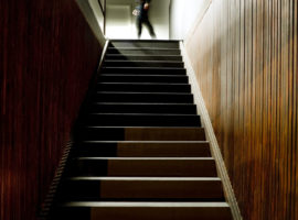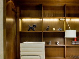 Other aspects that were considered while interior designing the lounge was to keep in mind about the circulation space, as each car on display is treated as a model with scenic lightings, enough viewable space around the car and is different from the other cars. This showroom is devoid of colourful walls or interiors and allows the car to steal the limelight whereas the walls are left natural giving out a rustic finish to the lounge. Divided into two levels, the first level is the lounge and display where large glass facades span the wall length, with an L – shaped display configuration for the Porsche cars. A sleek wood counter with a hidden toilet and 2-seater lounge with an in-built open shelved wall for car accessories and brochures completes the frontal facade. Not to forget is the wooden stairs leading to the admin office above which overlooks the display lounge.