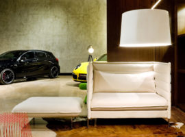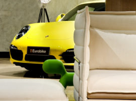 At the rear of the display lounge, a garage is designed to hold about 6 cars that have easy drive-in and drive-out facilities. With about enough room for 8 cars on display, the showroom Eurobike lives up to the brand’s name and quality standards.
