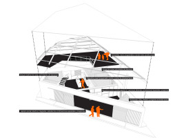 Conversely, the areas in-between these divisions act as intermediary zones for interaction, circulation and buffer spaces for noise reduction. Furthermore, they remain accessed by means of sliding doors, which save space and ensure the privacy of the occupants.