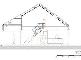 Alternatively, the roofline of the house acts as the significant design element and unites the overall structure and visual appearance, as well. Interestingly, the roof appears as a conical form in elevation and makes room for a loft accessed by a stair from the ground floor. In short, the visual perception, to create a ceiling height, twice the original, in a simplified manner, is commendable.