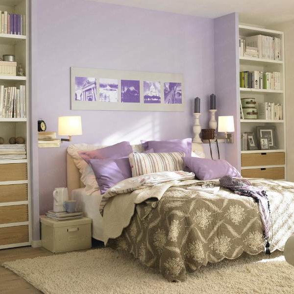 For bedrooms that are designed to be evergreen romantic, the simplest colors to opt for are purple and lilac. The combination is neither too girly not too manly- the right balance that is needed in the room of a couple.