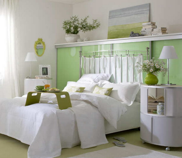 For summer and spring bedroom designs, green is a must have color and works best when combined with white. A touch of light and lime yellow can be good idea to add a third dimension.