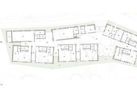 Moreover, a large and lush outdoor space ensues from this section, which stands divided into various topical quarters. Subsequently, this division renders a connection between the outdoor space and the classrooms, which remain directly connected to the outdoor space.