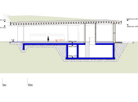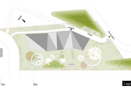 Respectively, a simple urban point of view defines this one storey site as a transitional locale, which lies between manmade landscapes, surrounding Lake Weikerl and the vivid geometrical structures of Solar City. Subsequently, certain raised parts within the premises form soaring roofs, which act as perfect artificial landscapes. After the inclusion of functionalities, these landscapes stand formed impeccably, according to the design demands of each individual room.