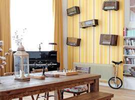 A feature wall is a lot more than quirky wallpaper. There has to be some element of uniqueness to make it worthy of a feature wall. Like in this image, the homeowner mounted vintage radios on the wall to create a fancy display.