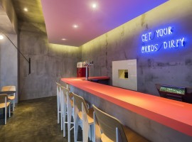 In addition, the use of vintage vending machines serves the purpose of an entrance door to reveal a contrasting ambience, which warmly welcomes visitors into Flask. Conversely, the bright and radiant décor of the Press stands highlighted by the subtly muted lighting with barrels of liquor and the elaborately crafted display areas.