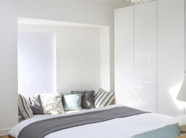 You can make your big furniture pieces seem less imposing if you keep them simple and minimalistic. It is not such a great idea to have a large cabinet or chest looming over your head in a small room. Instead, you should go for a hardware free design with light colour and simple, plain surface. The glossy surface on the cupboard will help bounce off the light, which makes the room look bigger, like a mirror effect.