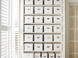 Storing identical containers in open shelves are a great way to hold a lot of items together in a neat organized way. If you want to make the most of the available space, ensure that your shelves reach all the way to the top. You can place all kinds of containers in the shelves but be sure to keep the design common. Measure the size of the shelves so that you can buy your containers accordingly. Don’t make this wall full of potential storage space look shoddy. Instead, use your creative bend of mind to solve not just a purpose but also enhance the décor. To keep the arrangement consistent, use labelling system so that it is easy to access the items that are being stocked up in these containers.