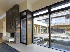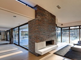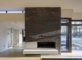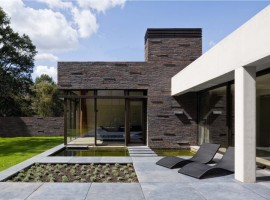 The exteriors: As the name may suggest, the house is located on the edge of the forest. The design has an L-shaped base, where the main public rooms and functions are located. The outside walls ensure the privacy of the house, designed of long and dark bricks put together in horizontal lines. Wood, concrete, and bricks together work in together to bring a charm to the exteriors that’s hard to resist because the appeal is contemporary but in line with nature.