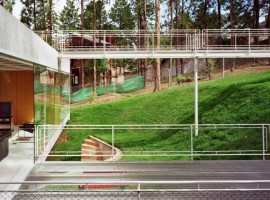 The interiors: The house is a complete delight from the interiors providing the onlookers with some great interior design ideas. Features include graniteware floors matched with glass walls. The rooms here are in open style in a way that one can actually enjoy the outdoors to the best possible extent. With glass walls free of frames, there are no hindrances in the views. The design for the ceiling of the lower level and the living space is in the same way, which brings in ample beauty and uniformity all along.