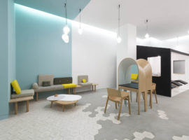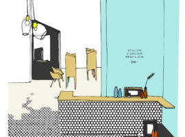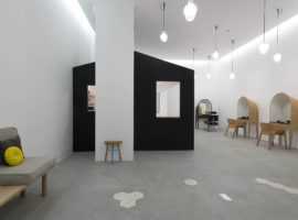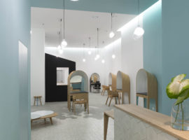 Le Coiffeur designed by Margaux Keller Design Studio + Bertrand Guillon Architecture is an eclectic hair salon, shaded with soft sea tones of azure blue and white over vintage inspired octagonal tiles that fade into the concrete floor. It is a hair salon designed with subtle French element touches that can be seen from the bright yellows paired with the grey mid-tones, against the azure blue backdrop of the wall. The architect has picked quite a few distinct elements from the Marseille native region and has brilliantly incorporated them in the sea themed décor.