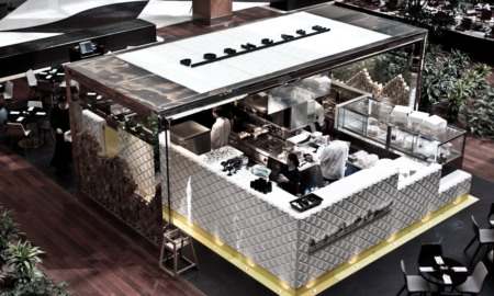 Posh Cafe by Jassim AlShehab is an island kitchen that caters to an open layout restaurant in the atrium of an exclusive...