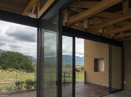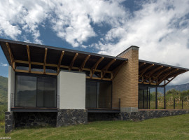 Consequently, the choice of materials for the house reflected the balance, rhythm and remained coherent to the external surroundings. Eventually, the house strikes an unpretentious appearance, with its wooden structured girders and posts. Considering the usage of materials, earthen walls, oblique roof, larch wood panels for the interior, and medium density fibreboards for insulation, generates a warm ambience, amidst the green surroundings.