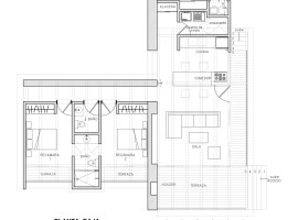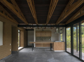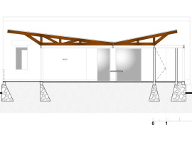 Primarily, the concept of the house establishes the fact to retain the trees, foliage and green cover on the site, with concern to preserve the ecological balance of the environment. On the other hand, the internal spatial arrangement of the house is modest, with dual rooms for sleeping, and an open plan that combines family activities and cooking with an outdoor dining area.