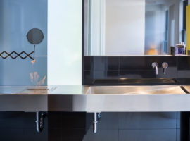 Furthermore, the minimalist artisanship of the common area includes a cosy living room with a sumptuous sofa, with soft accent pillows and a corner desk. Adjacent to the living room is the dining room, thus making it a comfortable spot for casual breakfasts or evening coffee.