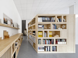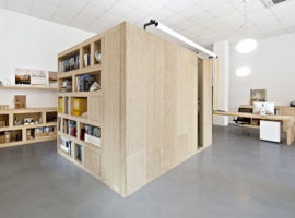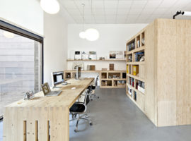 Designed by Zest Architecture, the concept of a shared office space forms the backbone for the Office, Dones Del 36, which unites an architect studio and an online business firm in Barcelona, Spain. The brief is innovative and inspiring, which translates into a flexible arrangement of bespoke furniture such as storage cabinets, shelves, desks, and chairs, for common office use by both the sides.