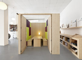 Zest Architecture designed the shared office space, Dones Del 36, in Barcelona, which is innovative and offers unique space saving solutions for office needs.