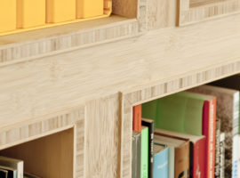 Even the choice of materials such as bamboo and pine wood, used for building the office furniture are cost-effective and have an easy maintenance. Bamboo for the cubed volume, built using completely treated sections, lends an elegant look to the elevation, both externally and internally. In addition, the use of acoustical material concealed by means of vibrant textured fabric brings liveliness to the office décor, besides reducing the noise levels.