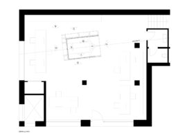 For this office, the work desks and chairs surround a multipurpose cubed volume, which serve as a meeting cabin for the office. This cubed volume for a meeting room is custom-built to serve various purposes for storing books, displaying exhibits, and multipurpose pull out cabinets. Again, each elevated side of the cubed volume serves a different function, thereby organising spaces around the office in an efficient manner. Towards the rear end of the office, a small storage cum work desk for packaging purposes stands hidden from view by the cubed volume.