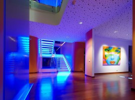 Furniture and lighting: If there’s anything that one would like to borrow from this house, it’s the lighting. Fun and full of shades, there’s everything from the bright floor lights to more stunning railing and running lights that create a smooth and lovable balance. Check for the unique staircase of the house that looks striking with the lights. Although not much is available on the furniture choice, color plays a dominant role there, as well.