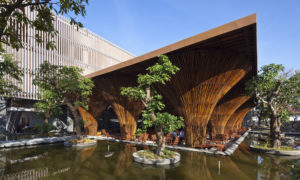 Kontum Indochine Café by Vo Trong Nghia Architects in Vietnam is designed with an inverted conical bamboo structure that uses passive design...