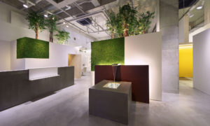 PacificDazzle baton by Atelier KUU in Japan is a salon designed with box shaped trees and leaf motifs in an interesting and...
