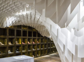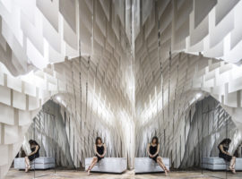 3GATTI, an architectural firm by Francesco Gatti, designed the concept of a “hanging ceiling” for SND Fashion Store, located in the Chongging Financial Centre in China. Trailing this concept, the vision to hang clothes, furniture and display cabinets from the ceiling evokes a floating sensation to the buyer and eventually clears off the floor area for effective circulation. Indeed one of the spectacular design ideas ever seen!