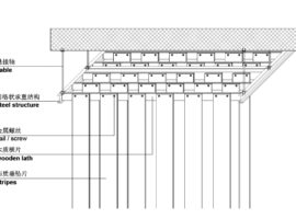 For the installation of the permeable suspended ceiling, a high voltage CNC machine, in a short span of time, cuts nearly 20,000 strips of fibre glass into various shapes and sizes for the store. These strips, held in place by a wooden lath, stand nailed to a steel structure, which eventually suspends the strips and the retaining structure for the hanger and display units.