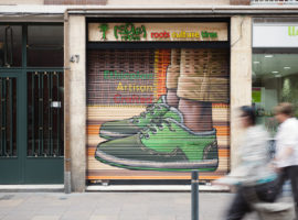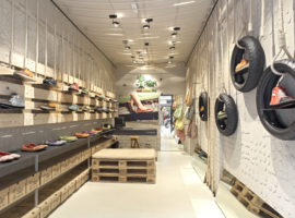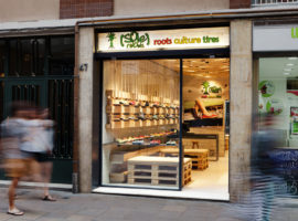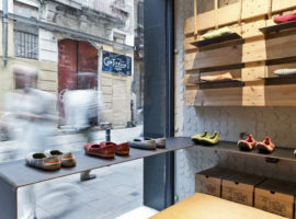 Recycle step by step is a design initiative by Dom Arquitectura + Asa Studio for the retail store “Sole Rebels,” which exhibits a limited edition of recycled shoes, in Barcelona, Spain. These shoes, unique in colour and appearance are fashioned from recycled materials based on the concept of “recycle, reduce, and reuse.” Similarly, the décor proposed by the architect resonates with the perception of the “recycle” concept, transforming the undersized butchers shop into an innovative and inspiring retail store.