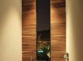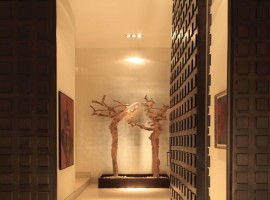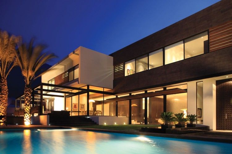 The exteriors: The house is located on a steep slope, but the design studio has used the place to the best possible extent, in spite of many hindrances in design. The design actually helped the studio to make the most of the views of the city of Monterrey. Two massive oak trees ensure privacy on the entrance and swimming pool. Using a concrete wall, the garden areas and swimming pool have been enclosed in the site. The wall comes designed in blend of materials like steel, black volcanic stone, IPE wood and white stucco.