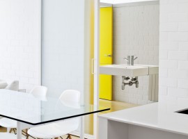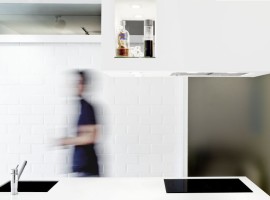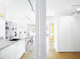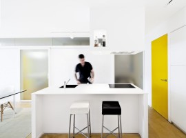 The Glazed Apartment in Spain by Sergi Pons is a visually stimulant home, which has clear defined spatial attributes. There is a living quarter combined with the dining and kitchen at the entrance, which is set off by a glazed wall, behind which there are two medium sized bedrooms that share a common bathroom. It is the simplicity of the layout that makes up for the finer details of the apartment, thus enhancing the real spatial attributes to the next level. The apartment looks smaller, in comparison to many of the reasonably sized studio apartments in Spain. It was a real challenge, to come up with interior design ideas that envision the space and create a visually striking and luminous interior for a small sized apartment.