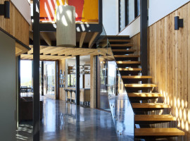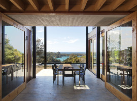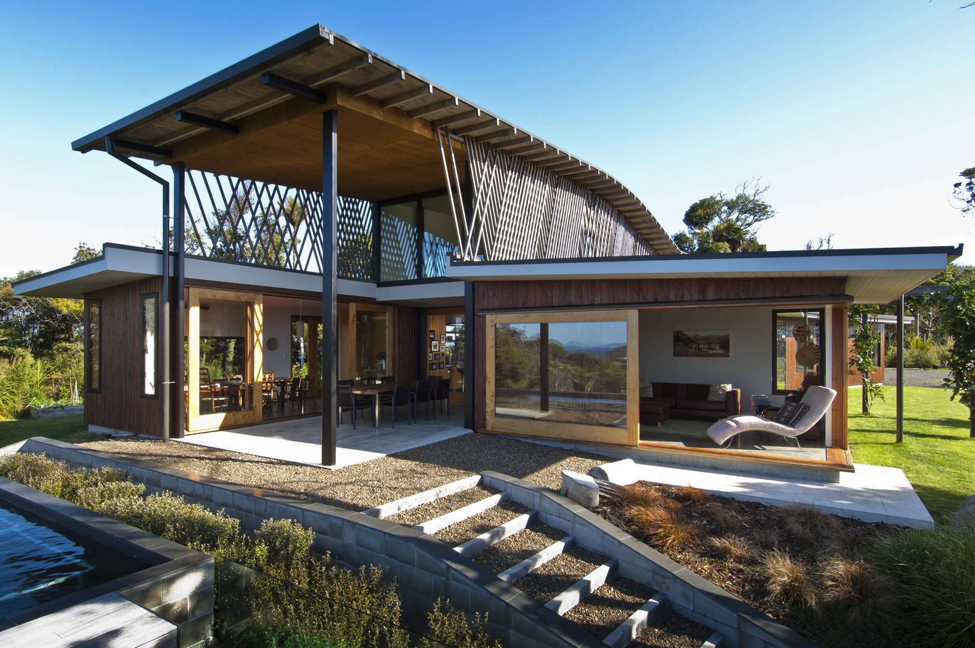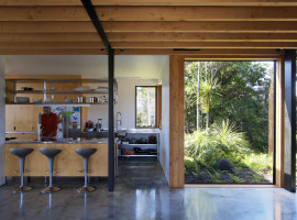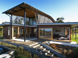 The Ngunguru House designed by Tennent + Brown Architects in New Zealand is a composition of habitable spaces with voids and open wood decks that make use of the natural daylight and air from the sea coast. It is an integration of spaces, which are defined by their activity parameters where the layout forms an obtuse angle facing the sea and oriented towards the North-south for passive ventilation and effective daylight. The layout follows a central corridor with ancillary spaces on either side for the family.