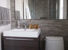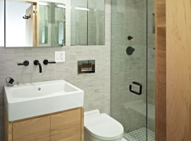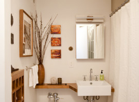Choose narrow sinks: There are trough sinks that are narrow and add a lot of style to the modern small bathrooms. These are generally mounted on the wall like a wall shelve and leave a lot of foot room to be used freely. Place a basket or even the dustbin under it!
