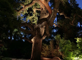 You can also place the uplight in such a way that it puts an entire focus on the tree rather than its shadow. Some more lights under the bench in this image make the area functional at night rather than becoming inconspicuous in darkness.