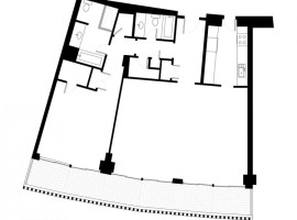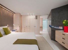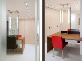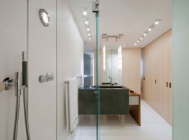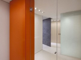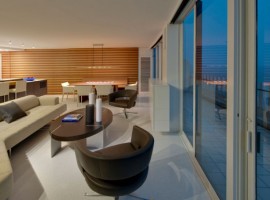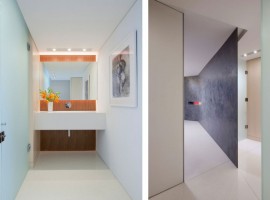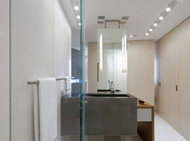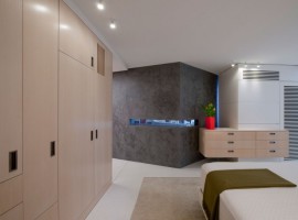 The interiors: There are multiple elements used in the design to offer open living spaces that are oriented for excellent river views. The rooms are designed with translucent glass, planar walls along with cabinetry elements, which not only define the spaces but also give a large feel to the apartment. The flooring in White terrazzo is extremely enticing, while the other features include radiant glass walls, white ash millwork, black concrete, Walnut wall paneling, integral charcoal plaster and aluminum work. The floating ceiling planes works extremely well with the White terrazzo flooring. While the kitchen has all the essential appliances, the beauty of the house also enhances with the open style wine cellar.
